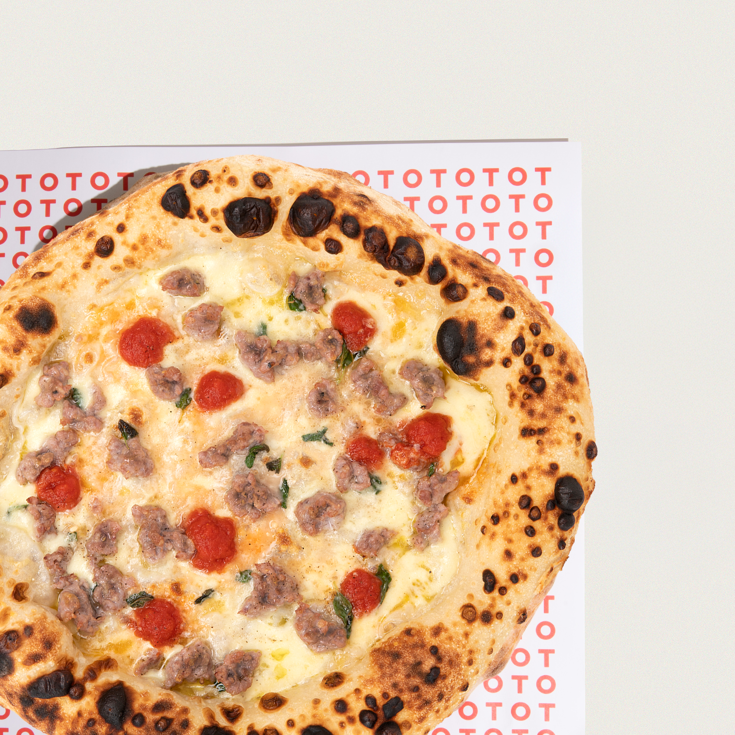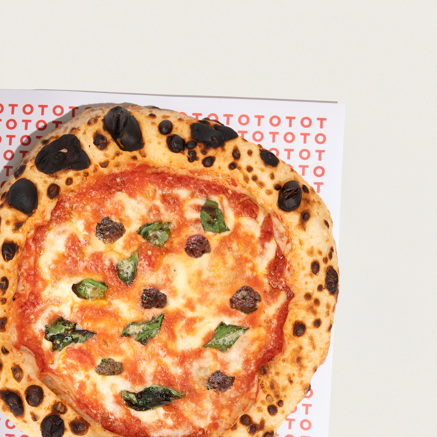 Økologisk Meatballs, tomat, mozzarella, basilikum, parmesan.
